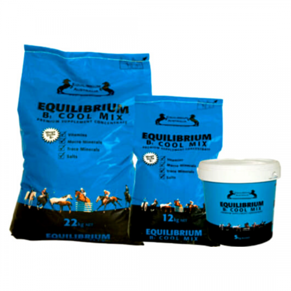 Equilibrium B1 Cool Mix is an all-in-one supplement containing balanced ratios of vitamins, macro and trace minerals and salts (electrolytes). It is designed to correct nutritional imbalances and deficiencies that occur in your horse's diet by complementing their current feeding program. B1 Cool Mix is recommended for nervous or excitable horses as it contains high levels of magnesium and vitamin B1 which support the central nervous system.